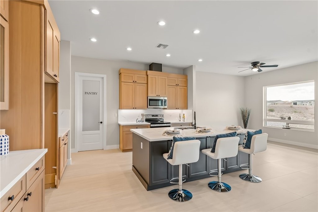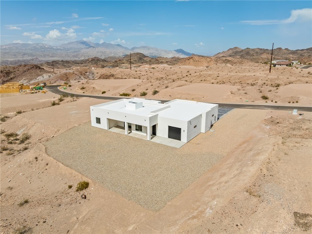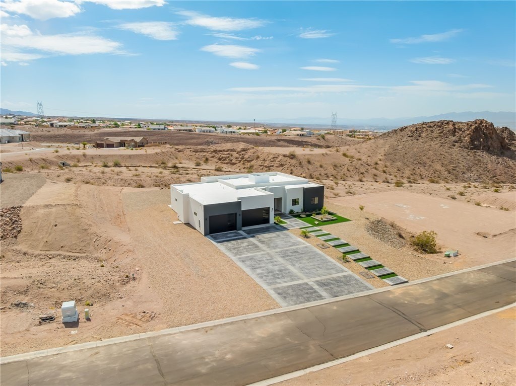 Discover refined desert living with this brand-new custom home, gracefully set on just over an acre in the prestigious Desert Canyon community. Offering both sophistication and functionality, this property pairs an expansive luxury residence with extraordinary 8 car garage featuring two oversized two-car garage with drive thru and 9-foot clearance with an impressive depth of approximately 57 feet, ideal for car enthusiasts, recreational toys, or a private workshop. Offering more than 2,000 sq. ft., the home showcases a well-designed split floor plan with soaring views and abundant natural light. The open-concept living and dining areas flow seamlessly into a gourmet kitchen, highlighted by extensive cabinetry, a walk-in pantry, and sliding glass doors that invite the outdoors in while capturing the serene desert landscape. The private primary suite offers a true retreat, complete with a spa-inspired bath featuring a designer soaking tub, oversized walk-in shower, and spacious custom closet. Two guest bedrooms, positioned at the front of the home, share a beautifully appointed full bath with a tub/shower combination. For added convenience, the dedicated laundry room provides functionality without disrupting the home s elegant layout. Perfectly blending modern luxury with the tranquility of desert living, this new construction estate on just over an acre offers both space and sophistication an unparalleled opportunity in Desert Canyon Estates. Adjacent to the community you have the beautiful Katherine's Landing at Lake Mohave and river access at the end of the road at Davis Camp. Close to Casinos, shopping and Laughlin attractions.